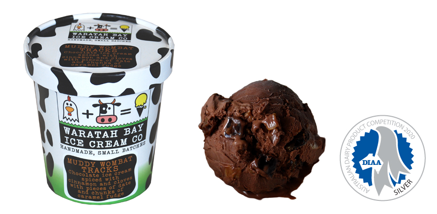 Chocolate ice cream spiced with cinnamon and cloves with pieces of date and chunks of caramel fudge.